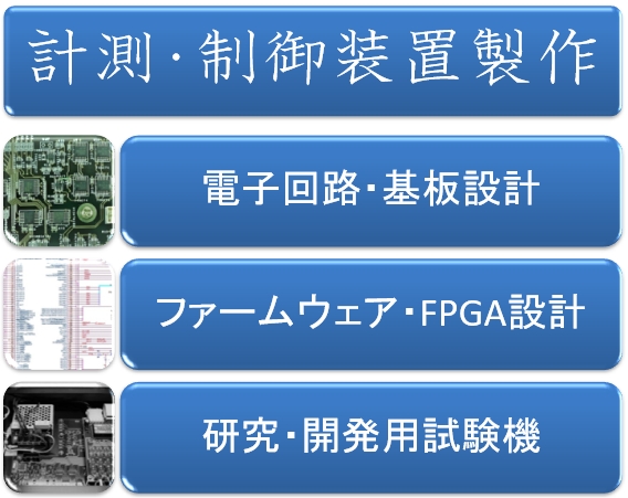 ・ ご要望の仕様をお伺いし、設計から筐体製作までトータルで対応致します。 ・ 市販の計測機器は機能が多いが高額 ⇒ 単機能で良いので仕様にあったものが欲しいなどにお応えします。 ・ GPSやBluetoothモジュールの組み込みにも対応致します。 |